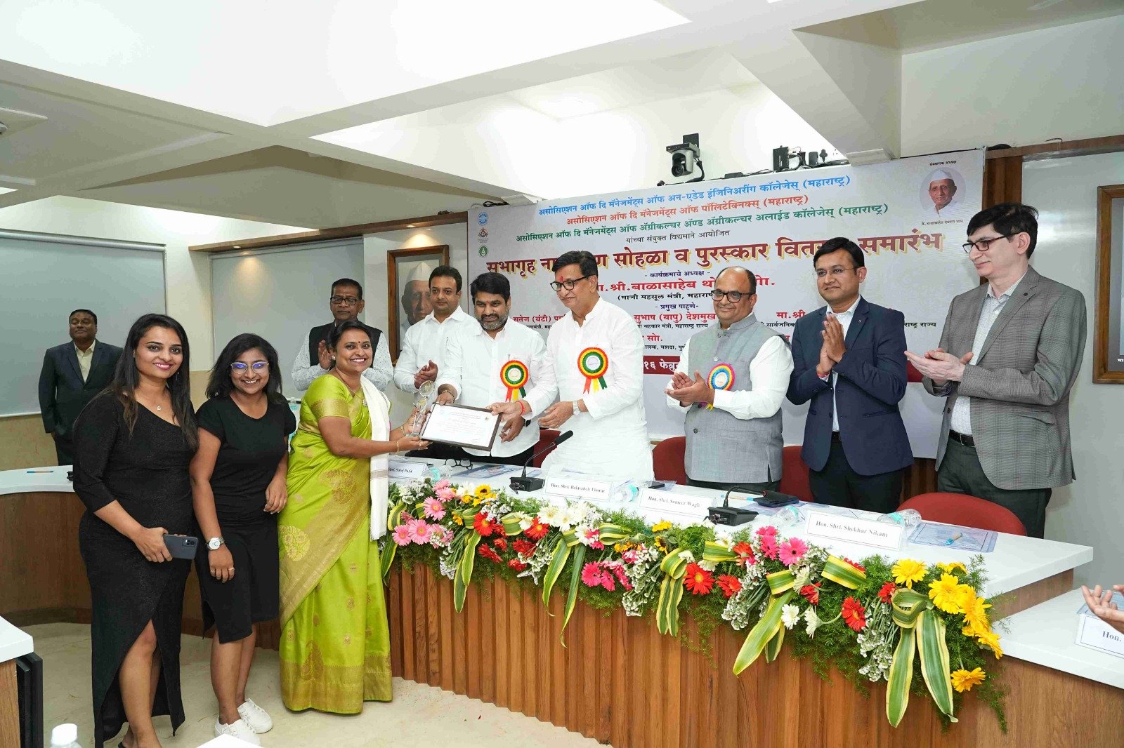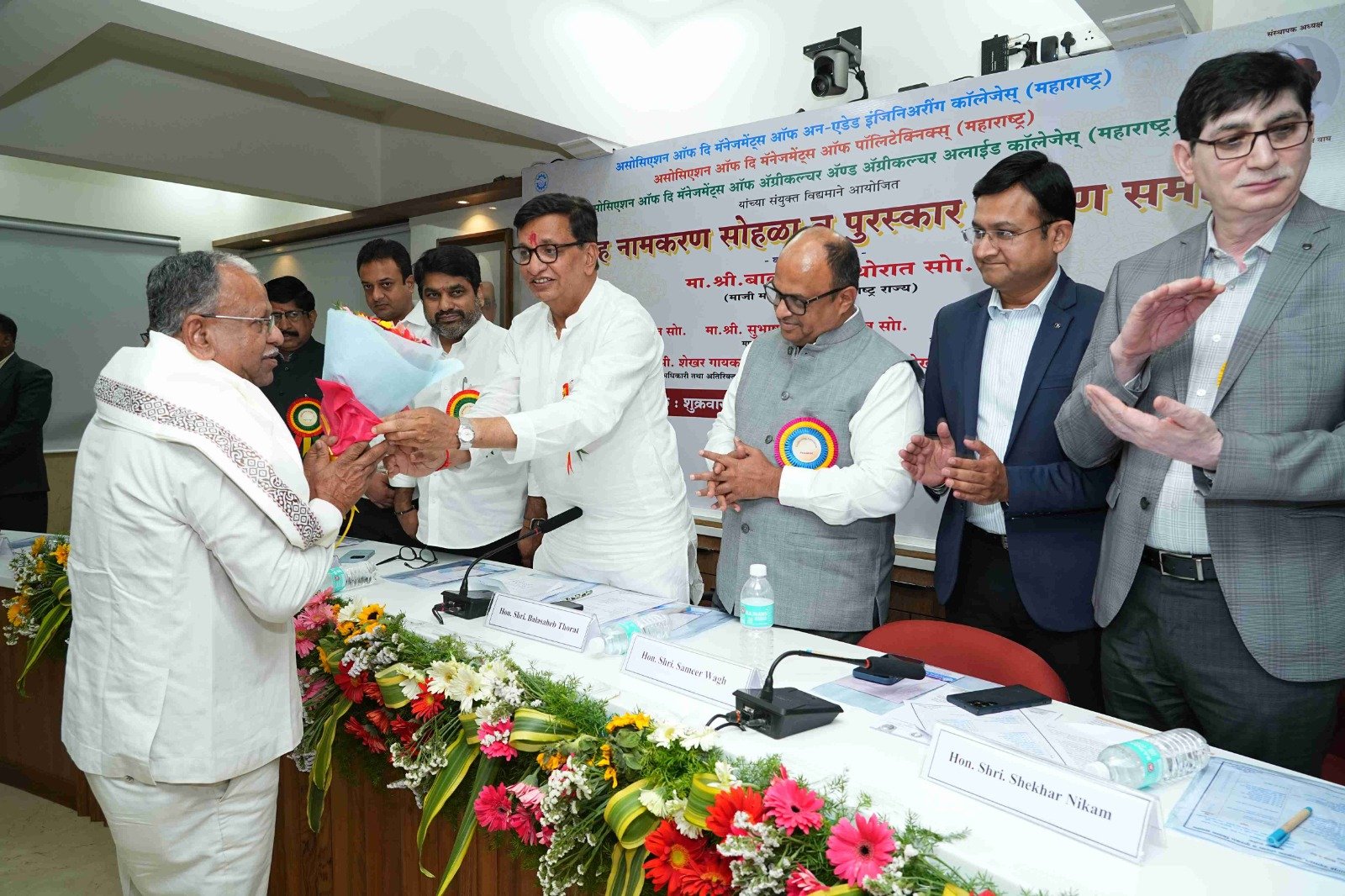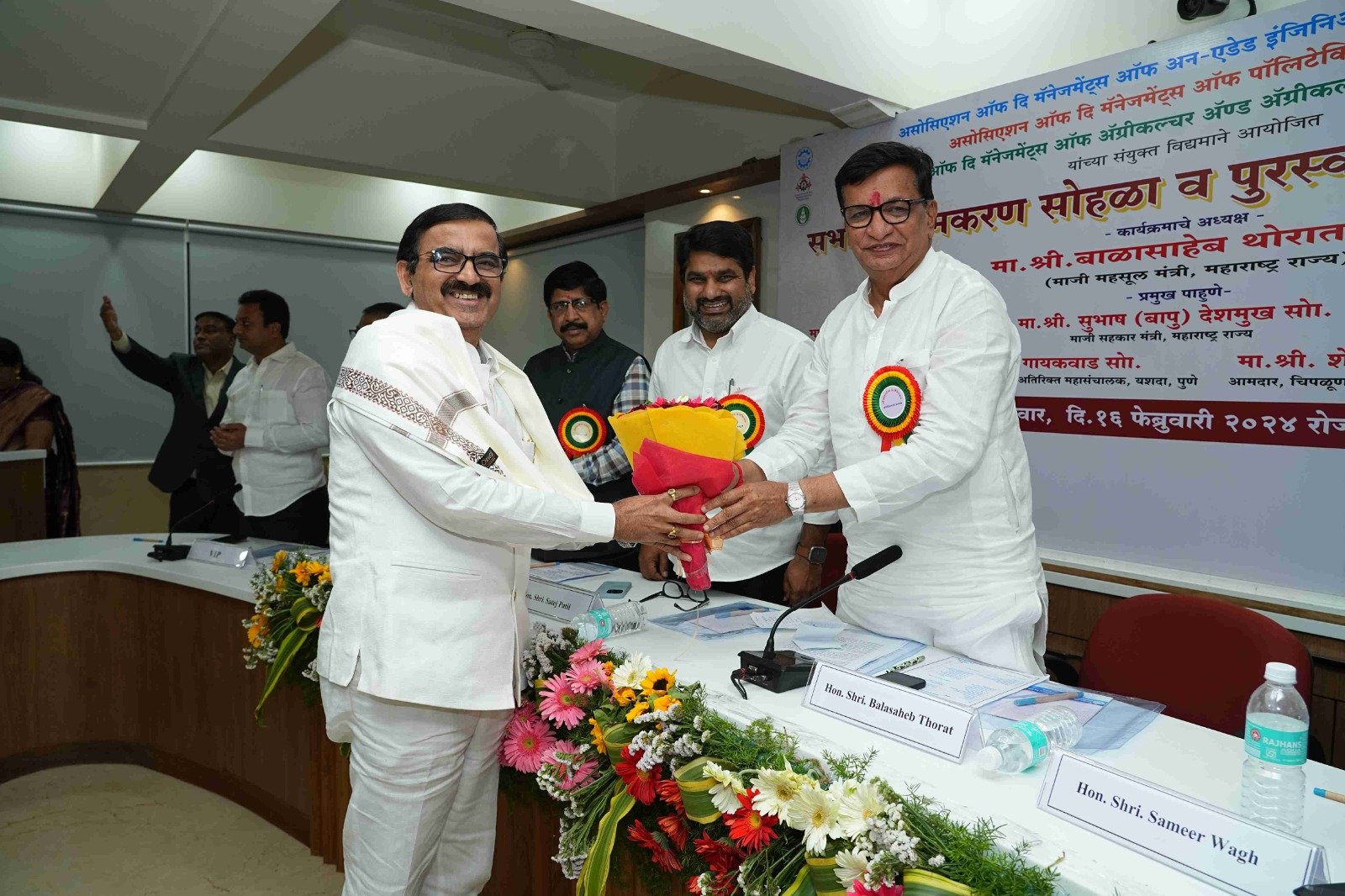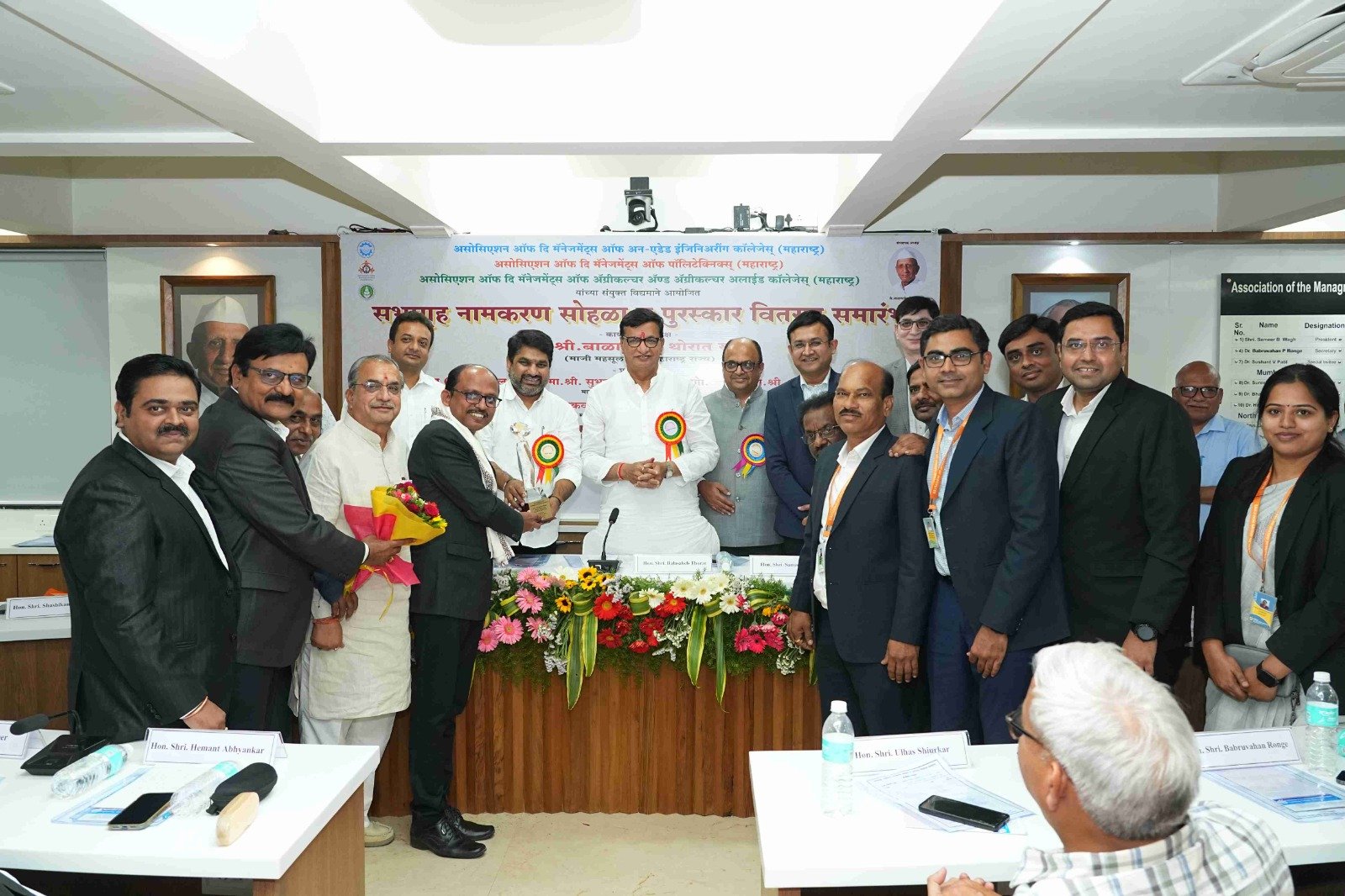 On behalf of the Engineering Association, 'Hon. Balasaheb Wagh (Bhau) Memorial Life Time Achievement Award' was awarded to Trustees of Jaywant Shikshan Prasarak Mandal, Pune Hon. Dr. Pramod Pandurang Vitkar by the auspicious hands of former revenue minister of Maharashtra state Hon. Mr. Balasaheb Thorat in presence of the former Minister of State for Home Affairs of Maharashtra State Hon. Mr. Satej (Bunty) Patil, President of the Association. Mr. Sameer Balasaheb Wagh and other dignitaries