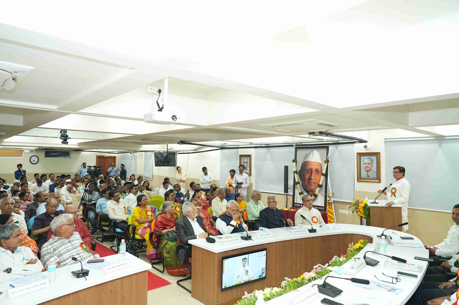 Felicitation of Dr. S S Bhagat by the former revenue minister of Maharashtra state Hon. Mr. Balasaheb Thorat in the presence of the Former Minister of State for Home Affairs of Maharashtra State Hon. Mr. Satej (Bunty) Patil, Retired Chartered Officer and Additional Director General, Yashda, Pune. Mr. Shekhar Gaikwad, President of the Association Hon. Mr. Sameer Balasaheb Wagh, Treasurer Mr. Amit N. Kolhe, General Secretary Dr. Anil Kumar S. Gupta and other dignitaries