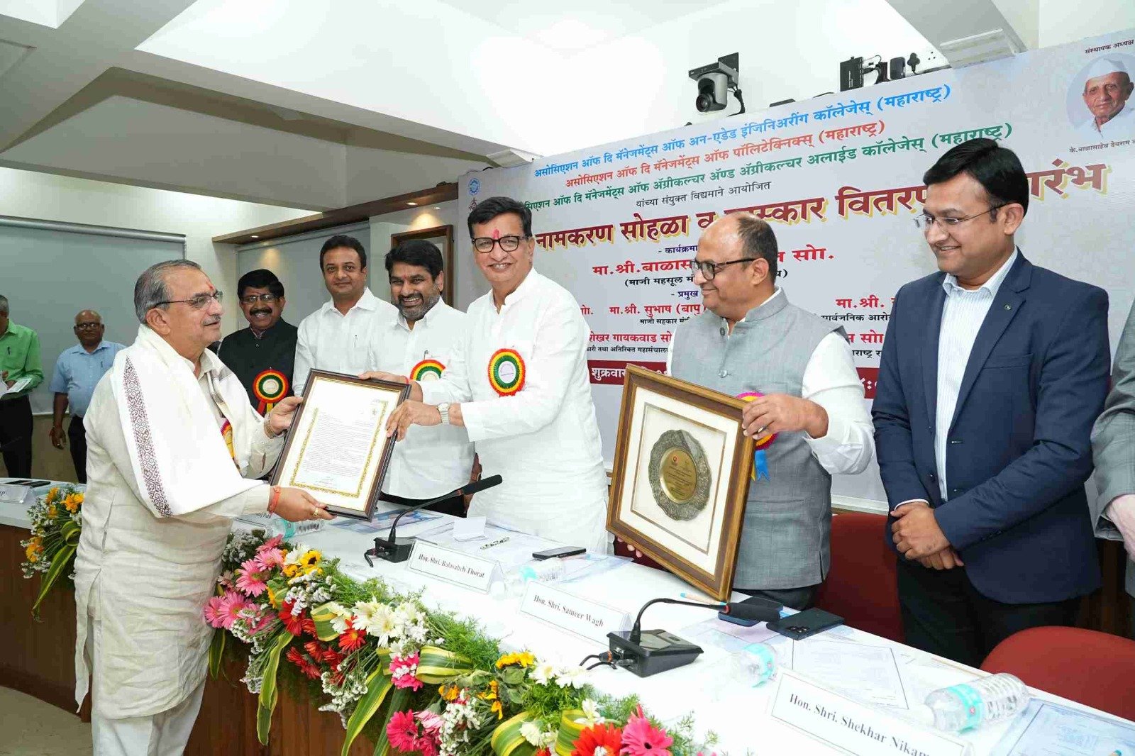 On behalf of Polytechnic Association, 'Hon. Shri. Balasaheb Wagh (Bhau) Memorial Award for Best Teacher' is awarded to Dr. Pravin Bhandari of the K K Wagh Polytechnic, Nashik. by the former Minister of State for Home Affairs of Maharashtra State Hon. Mr. Satej (Bunty) Patil in the presence of the former revenue minister of Maharashtra state Mr. Balasaheb Thorat, President of the Association Hon. Mr. Sameer Balasaheb Wagh, Treasurer Hon. Mr. Amit N. Kolhe, Hon. Dr. Anil Kumar S. Gupta and other dignitaries