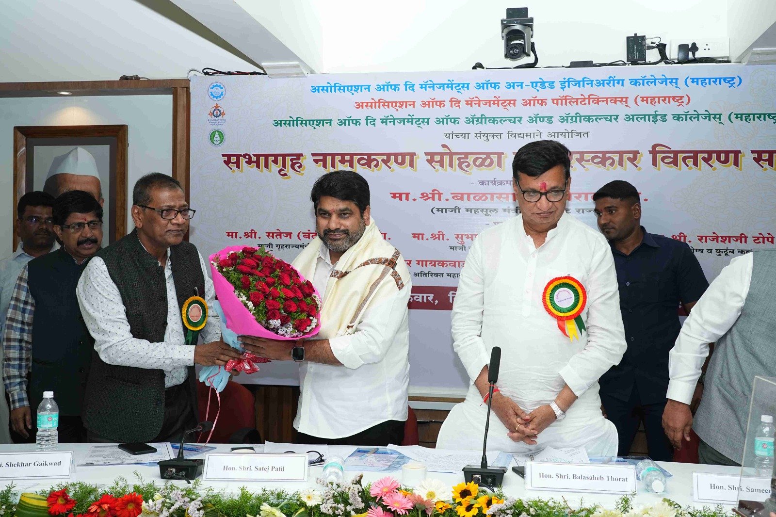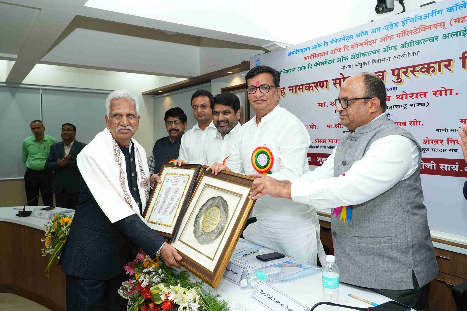 On behalf of the Engineering Association, 'Hon. Balasaheb Wagh (Bhau) Memorial Life Time Achievement Award' was awarded to Trustees of Jaywant Shikshan Prasarak Mandal, Pune Hon. Dr. Pramod Pandurang Vitkar by the auspicious hands of former revenue minister of Maharashtra state Hon. Mr. Balasaheb Thorat in presence of the former Minister of State for Home Affairs of Maharashtra State Hon. Mr. Satej (Bunty) Patil, President of the Association. Mr. Sameer Balasaheb Wagh and other dignitaries